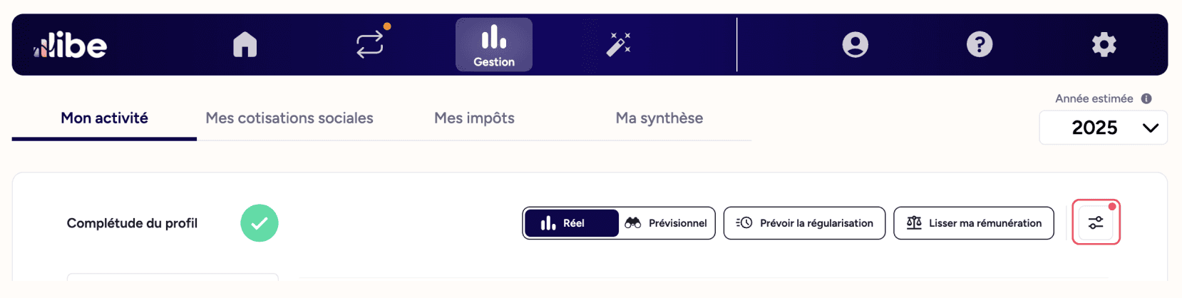 Intégrez dans vos charges une estimation de la régularisation Urssaf et Carpimko pour l’année à venir. Afin d'anticiper cette dépense, cette régularisation est intégrée dans la rémunération calculée par Libe.